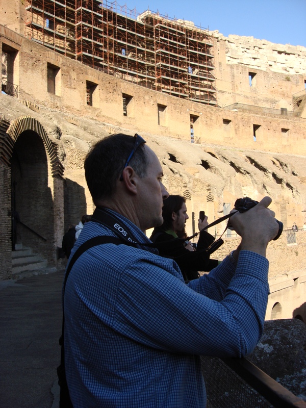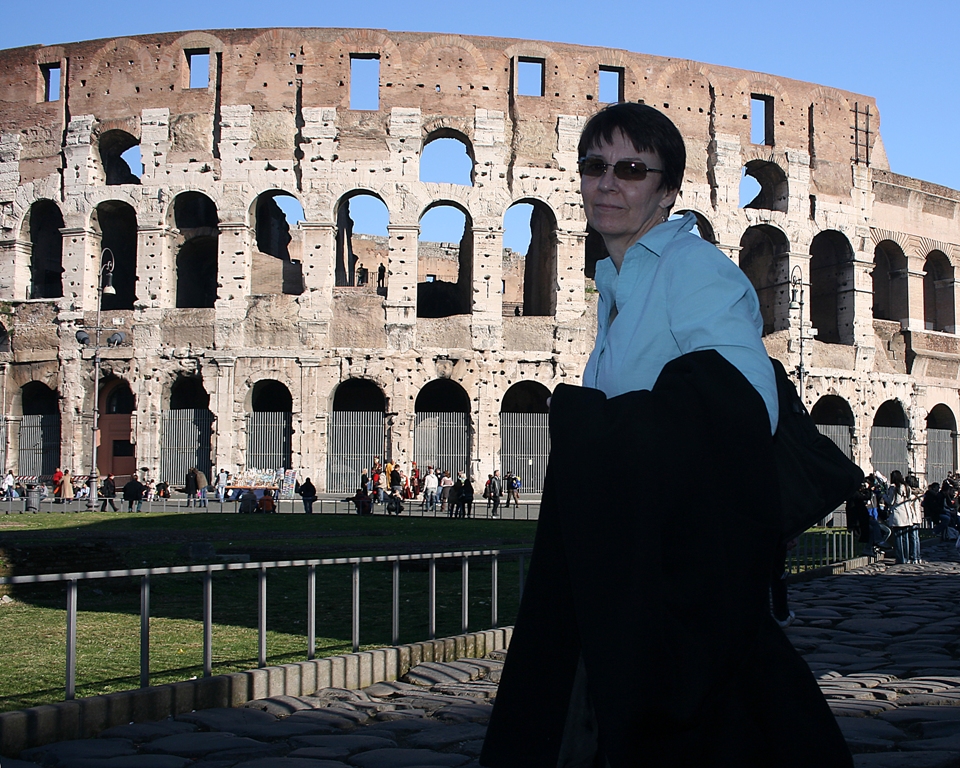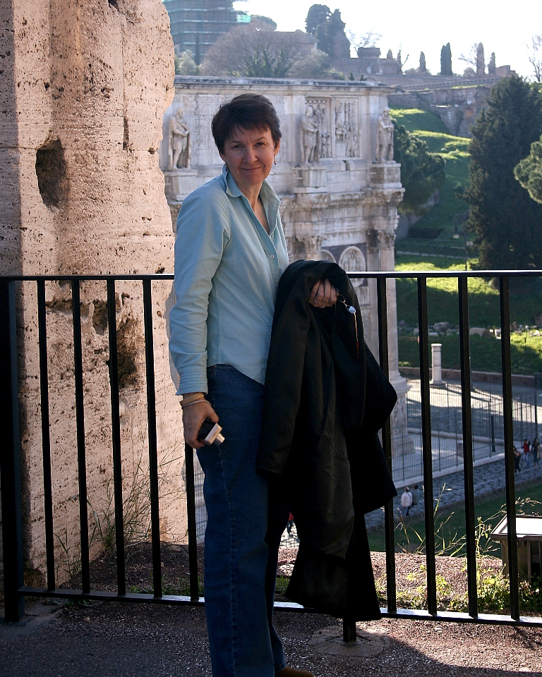 Monday was great weather. We arrived by plane about 8:15 am, and were checked into our hotel room before 10:00. By noon we grabbed a bite in the pizzeria next door and walked to the Forum/Coliseum area. With the sun out, the grass was green everywhere and there were some trees blooming and even a few wildflowers. It could have passed for springtime.