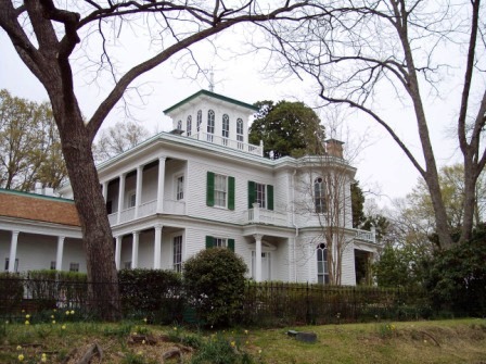 Without doubt, the House of the Seasons is the premier tour home in Jefferson. It's also the most photogenic. The most notable feature is the third floor cupola, with stained glass windows having a different color in each of the four directions, corresponding to each of the four seasons. The house opens all the way from the first floor up to the cupola, providing natural ventilation. In the second floor there is a dome painted with murals of goddesses for each of the four seasons. (Hence the name?)